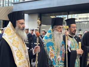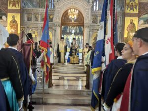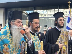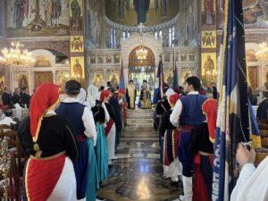 Στις 11:30 το πρωί τελέστηκε στον Καθεδρικό Ιερό Ναό Αγίας Τριάδος Πειραιώς η πανηγυρική Δοξολογία Χοροστατούντος του Σεβασμιωτάτου Μητροπολίτου Πειραιώς κ.Σεραφείμ και συγχοροστατούντος του Θεοφιλεστάτου Επισκόπου Αχελώου κ. Νήφωνος, βοηθού Επισκόπου και Πρωτοσυγκέλλου της Ιεράς Μητροπόλεως Πειραιώς, παρουσία των πολιτικών και στρατιωτικών αρχών της πόλεως.