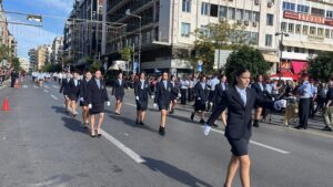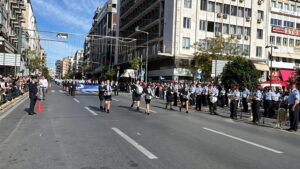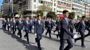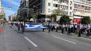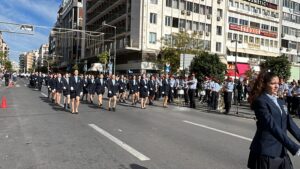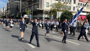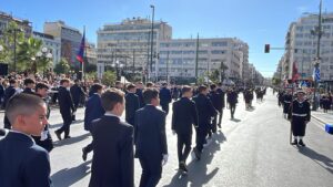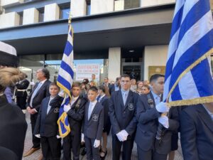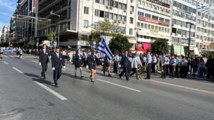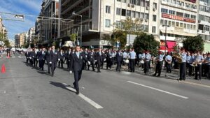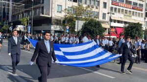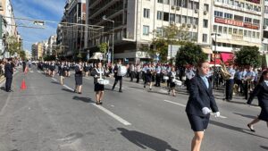 Ο εορτασμός ολοκληρώθηκε με την καθιερωμένη παρέλαση στο κέντρο της πόλεως, την οποία παρουσίασε και φέτος ο κ. Δημήτριος Αλφιέρης, Διευθυντής του Ιδιαιτέρου Γραφείου του Σεβασμιωτάτου και του Γραφείου Τύπου και Δημοσίων Σχέσεων.