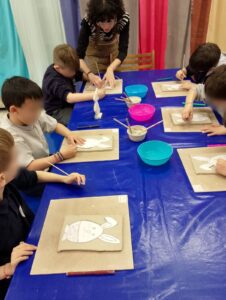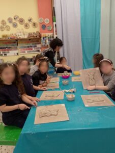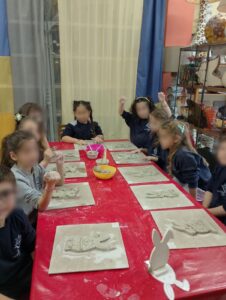 Εκεί γνώρισαν την τέχνη του πηλού, έμαθαν πώς μπορεί ένα απλό υλικό να μεταμορφωθεί σε ένα όμορφο έργο τέχνης και άφησαν τη φαντασία τους ελεύθερη. Με πολλή χαρά και δημιουργικότητα έφτιαξαν και ζωγράφισαν τα δικά τους πασχαλινά λαγουδάκια από πηλό.