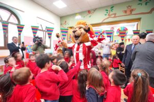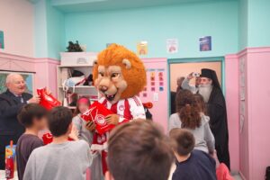 Ξεχωριστή νότα ενθουσιασμού χάρισε η παρουσία της αγαπημένης μασκότ «Λεόνε»🦁, η οποία περιηγήθηκε στις τάξεις, φωτογραφήθηκε με τα παιδιά και μοίρασε δώρα, σκορπίζοντας ενέργεια, χαμόγελα και ενθουσιασμό σε ολόκληρη τη σχολική κοινότητα.